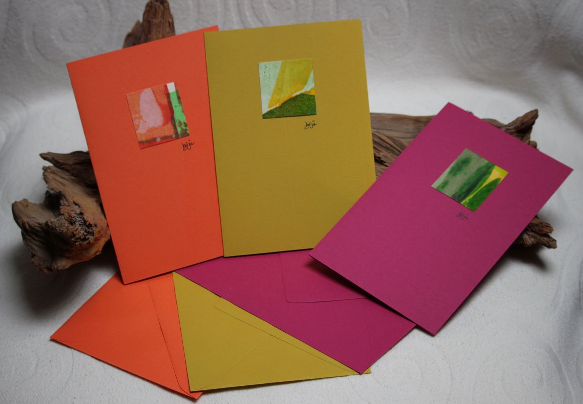 Beispiele von Kunstkarten mit gedruckten Motiven oder mit kleinen Originalen.
