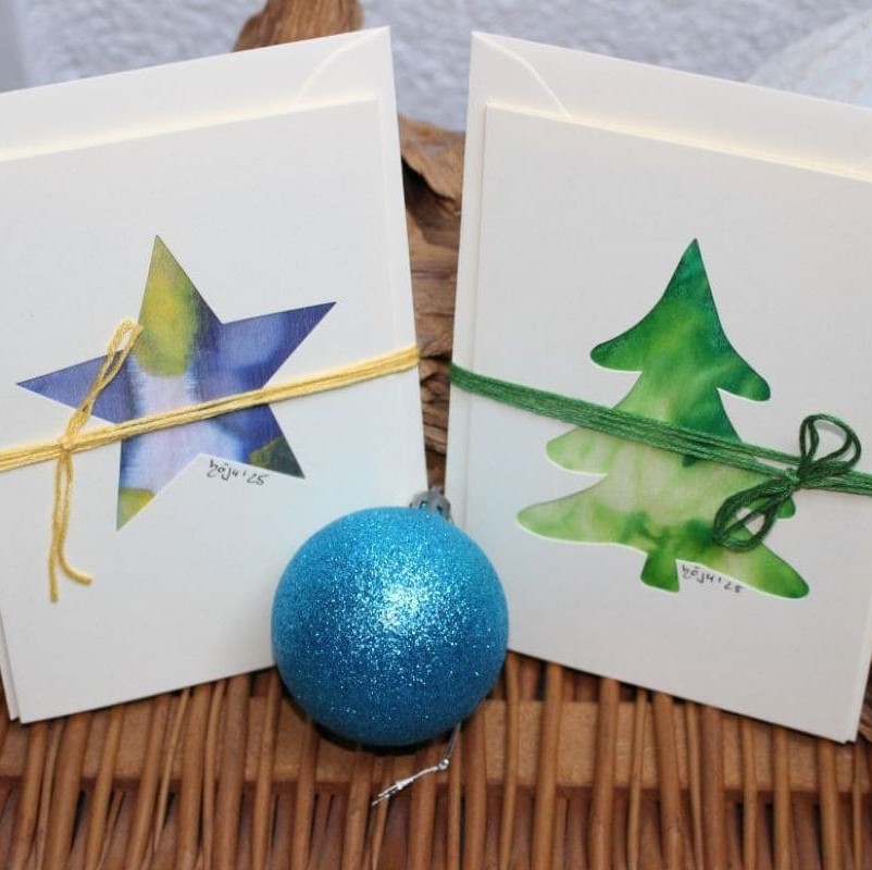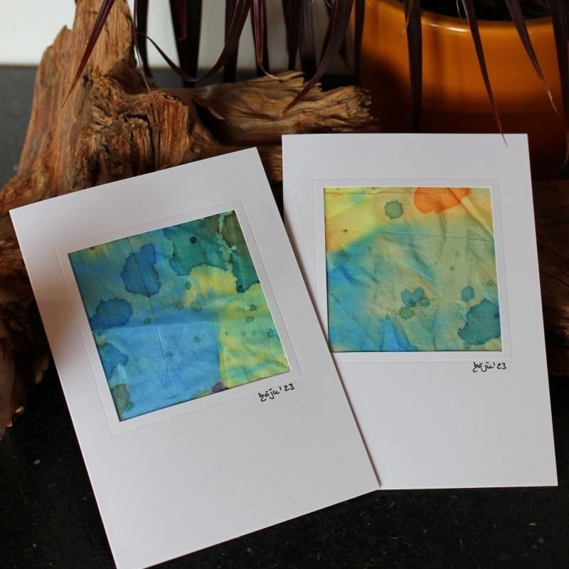 Künstlerische Grüße – Kunstkarten mit Malereien auf Seide.